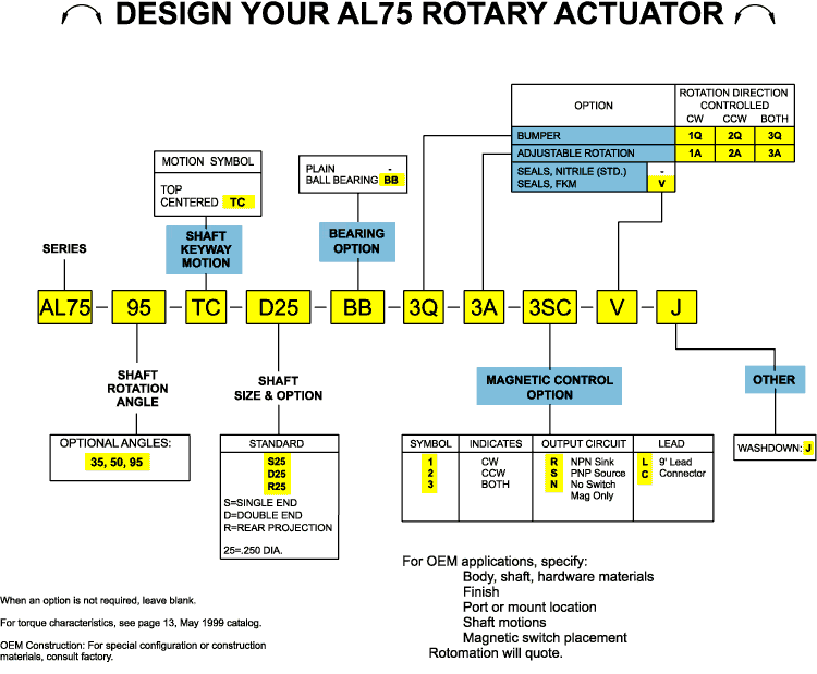 See the AL75 Compact Rotary Actuator Part Number page for detailed configuration and option information.